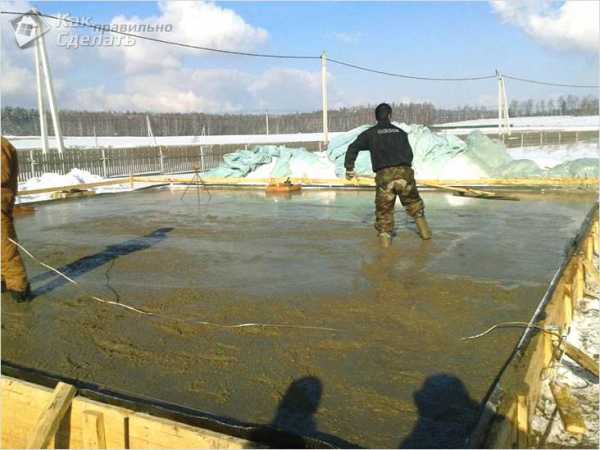 - Прежде чем приступать к заливке следующего отсека, стенку предыдущего необходимо облить водой.