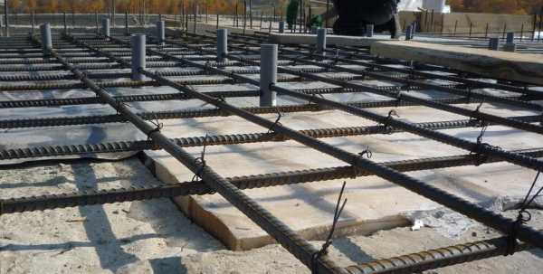 Помимо бетона, в состав плиты входит силовой арматурный каркас. Выбор арматуры зависит от ваших возможностей. Ее толщина не играет особой роли, так как за время пребывания в бетоне металл не успеет разрушиться за несколько десятков лет. Перевязка арматуры осуществляется при помощи толстой проволоки.