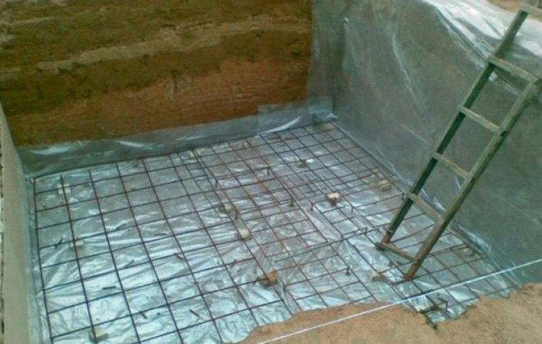 - Поверх подсыпки заливается подбетонка толщиной до 5 см, которая после отвердевания покрывается гидроизоляцией.