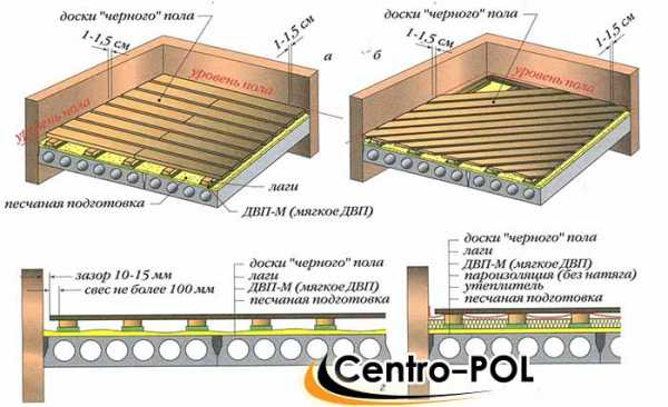 Важно. Укладывая деревянный пол в квартире своими руками, следите, чтоб высота лага была равна высоте мата утеплительного материала. При использовании минеральной ваты, высота лагов может быть немного меньше.