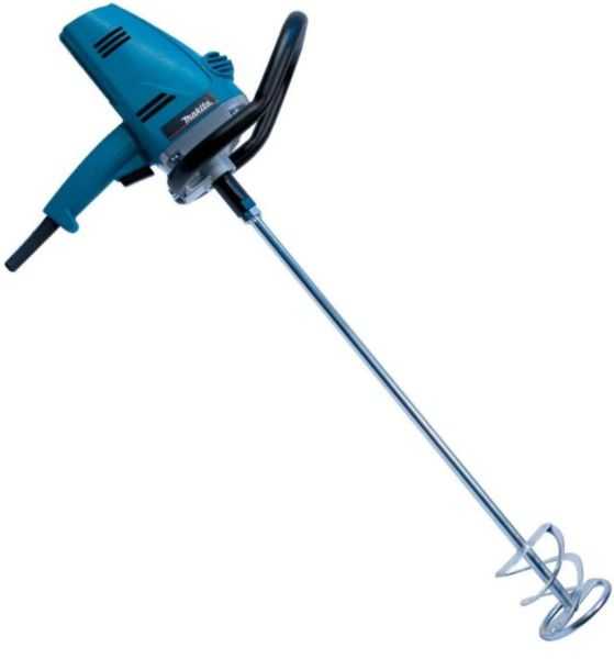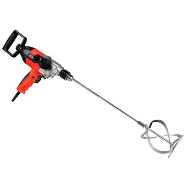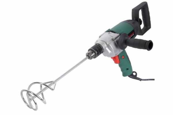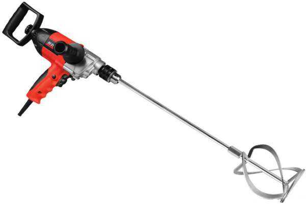 Миксер-дрель кроме перемешивания также сверлит, с помощью нее можно выполнять работы по крепежу. Такие инструменты имеют пистолетную рукоятку, многоскоростной редуктор, зажимный патрон (или возможность установить его), а в некоторых случаях – реверс. Мощность дрелей-миксеров во многих случаях вовсе не уступает чистым миксерам, но при этом такая установка, как правило, гораздо легче (приблизительно 3 кг). Дрель-миксер фактически представляет собой мощную низкооборотную дрель (например, модели Фиолент МСУ9-16-2РЭ и Makita 6013 BR) либо миксер с расширенными функциями (например, модель Фиолент МД1-11 Э).