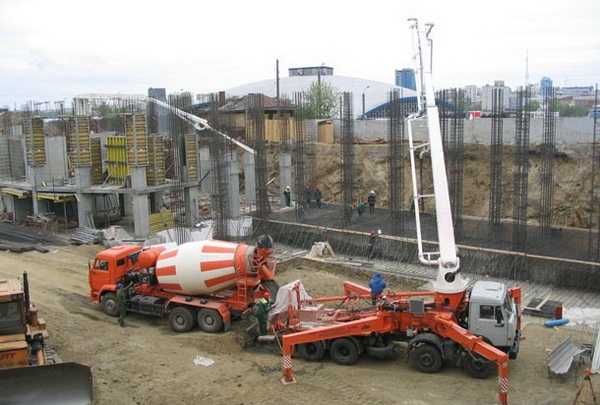 - Миксер-автомобиль. Это мощное оборудование, которое используется при значительном строительстве. С его помощью не только производят приготовление раствора, но и транспортируют его на большие расстояния. Емкость для раствора представляет собой вращающийся барабан большого размера. Внутри барабана расположен смеситель, который работает по принципу винта. Когда происходит загрузка компонентов для раствора внутрь емкость, барабан вращается в одну сторону, и происходит проталкивание внутрь емкости. При разгрузке вращение осуществляется в противоположном направлении, выгрузка раствора происходит с помощью винта. Для выгрузки готового бетона модели миксера-автомобиля могут иметь в своем устройстве бетононасос или наклонные желоба. Модели миксера с бетононасосом позволяют проводить транспортировку раствора к месту заливки на достаточно большие расстояния по горизонтали и на определенную высоту. Габариты автомобиля–миксера для бетона могут составлять от 2,5 до 9 кубов и выше. Один куб содержит в себе массу до трех тонн.