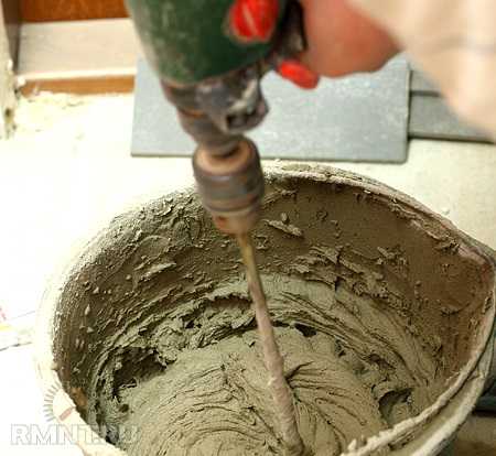 - Насадкой, установленной на электроинструменте, осуществляется перемешивание смеси до однородного агрегатного состояния. Делается перерыв.