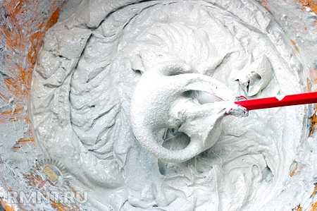 - По истечении рекомендованного производителем времени раствор вновь перемешивается миксером и затем передается в работу. Насадка промывается от остатков смеси.