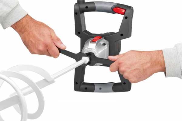 Многим мастерам нравятся в работе миксеры с рукоятками пистолетного типа, которые обеспечивают маневренность миксера и дают возможность сверлить (Kress 1055 HTC и Bosch GRW 11 E). Ручки в виде колец с кнопкой «пуск», которая расположена на них, как правило используются в чистых миксерах, и к такой ручке нужно привыкнуть. Наиболее удобными вариантами считаются миксеры, имеющие курковую рукоятку и дополнительную D-образную или П-образную скобу (модели Metabo RWE 1100 и Фиолент МД1-11 Э). Эта скоба часто может использоваться в качестве каркаса, который защищает инструмент. Для удобства во многих дрелях-миксерах есть дополнительные прямые рукоятки разной длины.