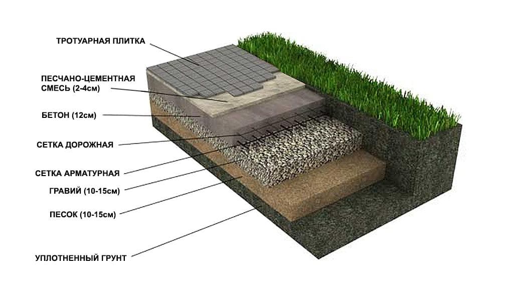 В итоге получается монолитная плита. Она должна возвышаться над грунтом на 10–15 см и иметь небольшой уклон, чтобы парковку не затопило. Для въезда на площадку оборудуют пандус.