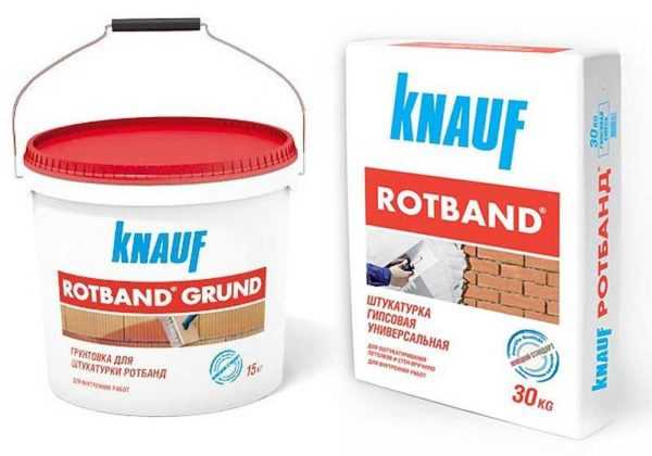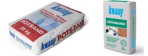 Наиболее популярна гипсовая штукатурка Ротбанд (Rotband) фирмы Кнауф (Knauf). Это действительно качественный продукт, которым легко работать даже новичкам. У той же фирмы есть другие продукты — Гольдбанд (Goldband) и НР Старт (HP Start). Они стоят дешевле, качество имеют вполне приличное.