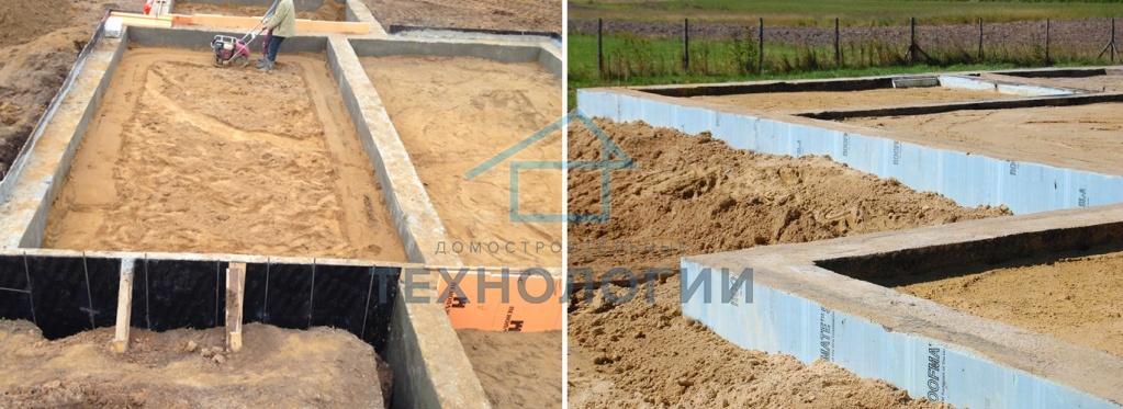 Для защиты от воздействия влаги все грани фундамента гидроизолируют по следующей технологии: