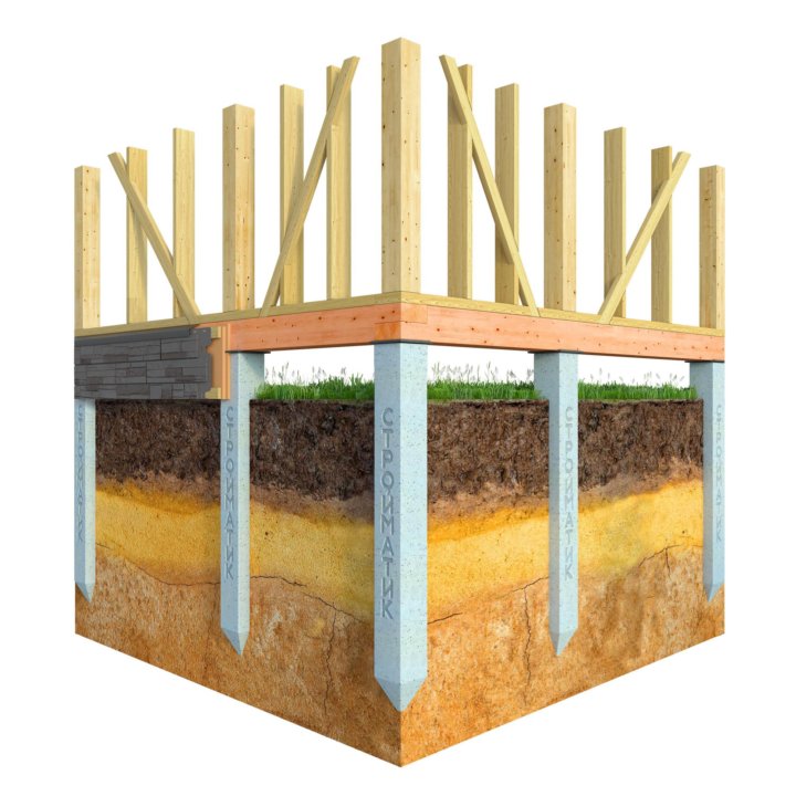 - Столбчатый фундамент под каркасный дом
