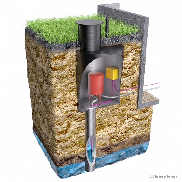 Этот элемент являет собой герметичную емкость, изготовленную из одного из подходящих материалов. В нижней части этого агрегата находится вход для обсадной трубы скважины, а сбоку кессона, как правило, располагают вводы, предназначенные для трубопроводов водоснабжения.