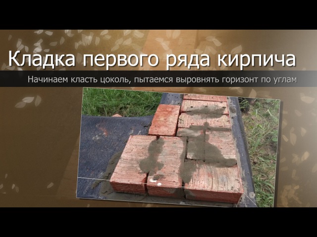 Перед непосредственным выполнением кладки первый ряд кирпича раскладывается без применения раствора – насухо. Это требуется для того, чтобы «спланировать» ряд и использовать для кладки преимущественно целые кирпичи (за исключением забутки и углов, где для перевязки используются их части). После укладки «сухого» ряда, выполняются отметки на фундаменте, где будут располагаться вертикальные швы.