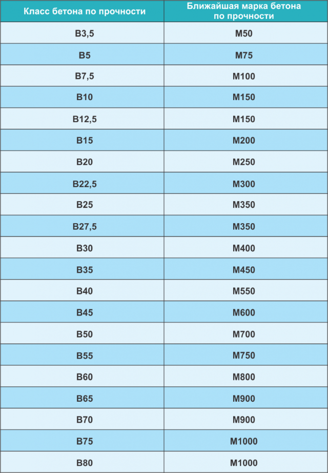 Состав бетона по маркам и классам таблица