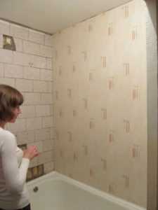 - Стены ванной комнаты выравнивают, если они неровные, шпаклюют, а затем плотно покрывают грунтовкой глубокого проникновения. Стены оставляют для высыхания, так как клеить рекомендуется на сухую поверхность.
