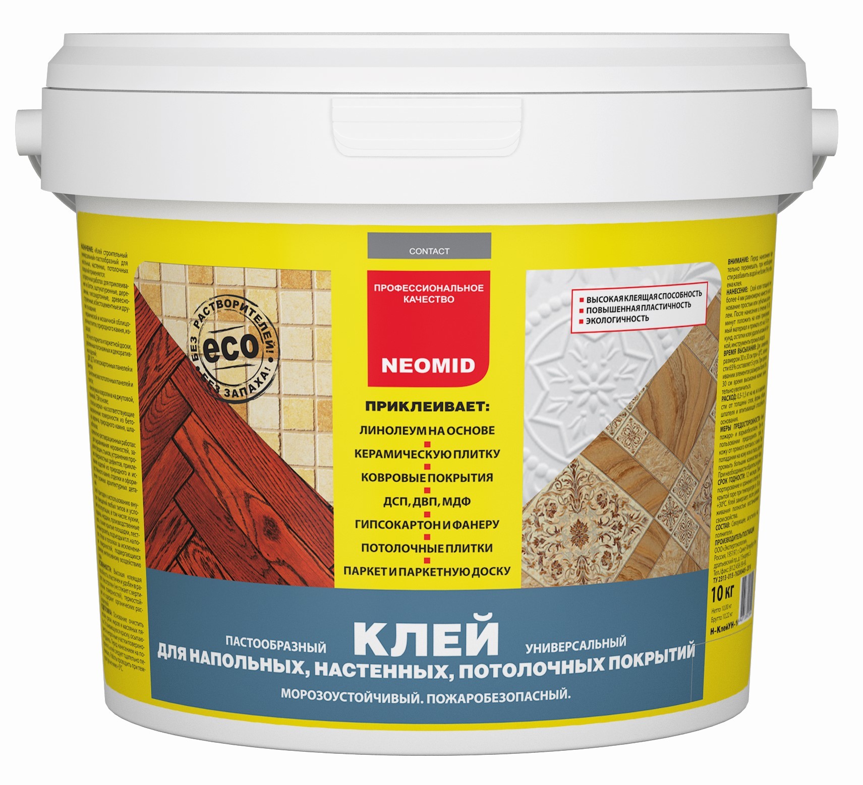 Реакционный клей для линолеума состоит из полиуретановых и эпоксидных элементов, которые вступают в химическую реакцию с основанием и прочно удерживают напольное покрытие. Полученное соединение обладает большой долговечностью, влагоустойчивостью и уместно в помещениях с большой проходимостью или с высокими нагрузками на покрытие.