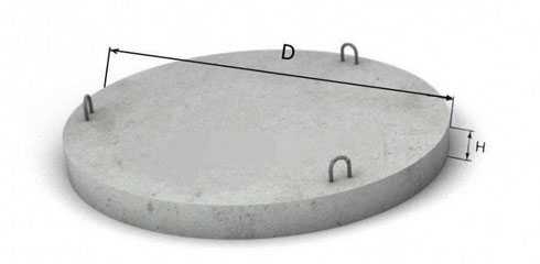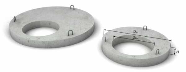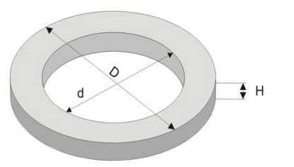 | Наименование | Диаметр Dн, мм | Диаметр Dвн, мм | Толщина H, мм | Объем бетона, куб.м | Вес, тонн |