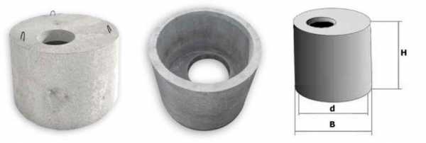 | Наименование | Диаметр D, мм | Диаметр d, мм | Высота h, мм | Толщина, мм | Объем бетона, куб.м | Вес, тонн |