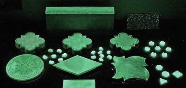 - после обработки светящимися красками плитка не изменяет цвет, начинает излучать свечение только с наступлением сумерек.