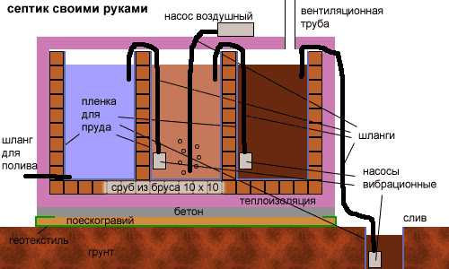 Если в вашем переливном колодце нет такой замечательной системы, то можно оборудовать ей второй резервуар. Установка аэратора в первой камера повлечет за собой быстрое заиливание системы.
