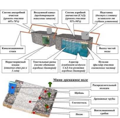 Частицы, требующие воздуха, выделяют большой объем вредных газов, которые необходимо удалять с камер септика во избежание накопления. Для обеспечения правильной работы всей системы, организуют процессы аэрации и вентиляции.