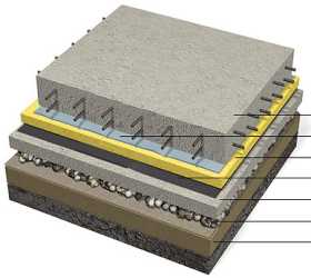 - Бетонная стяжка с армирующей сеткой. Является основой для монтажа чистового пола.