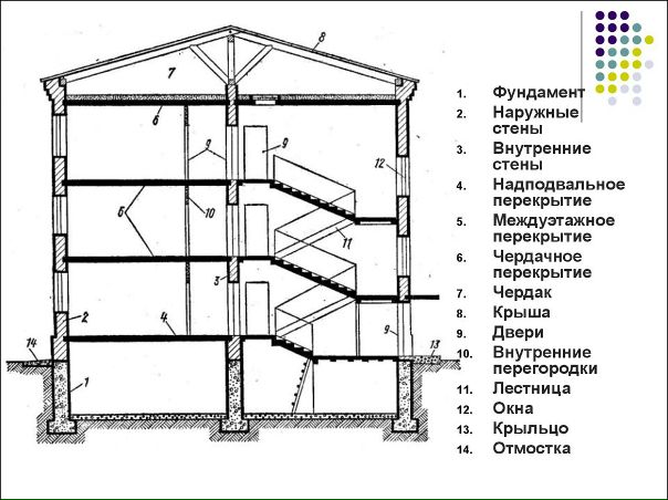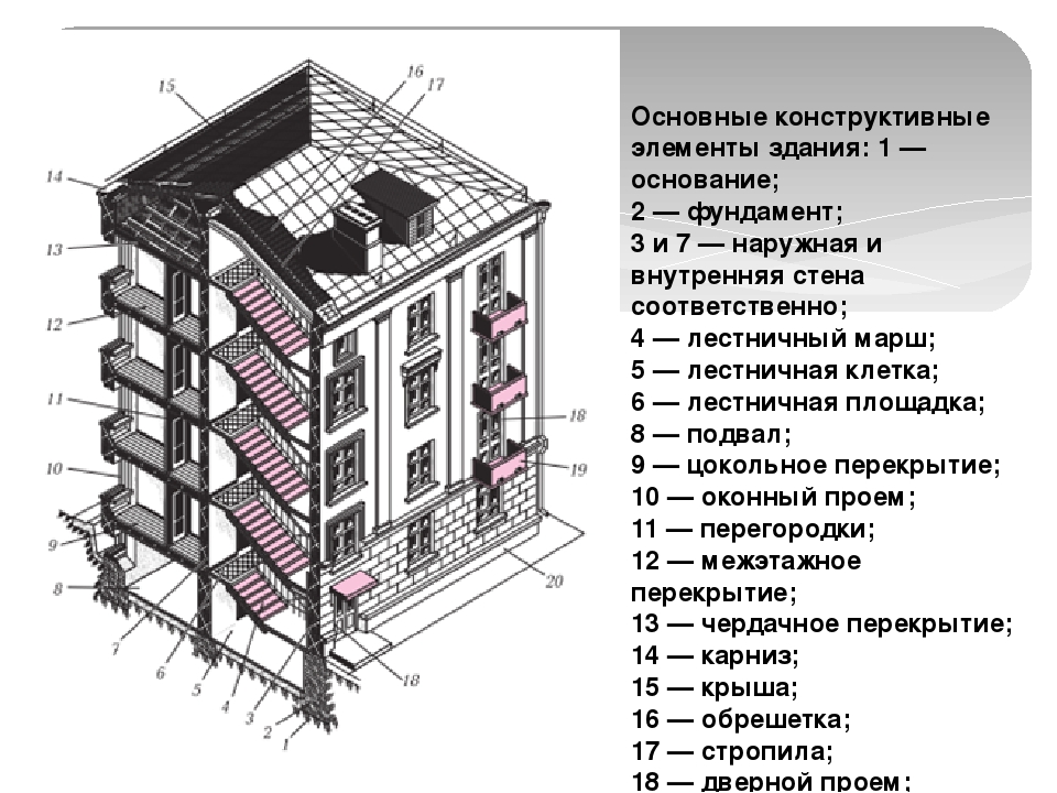 Конструкции зданий разделяются на две основные схемы строительства с несущими стенами и каркасные.
