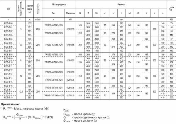 - В таблице указаны стандартные параметры кран балок, возможно изготовление кранов под заказ.