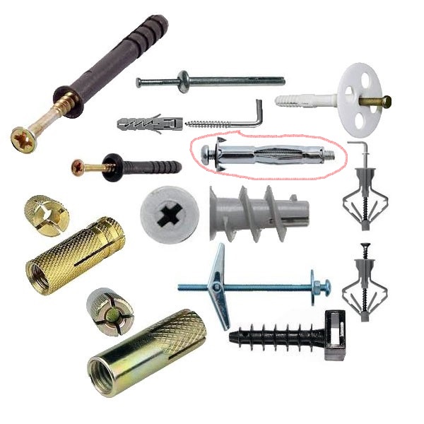 Именно от особенностей материала основания будет зависеть выбор того или иного вида крепежа. Так, для стен сплошной конструкции применяется разжимной дюбель, для стен полой конструкции — анкерный.