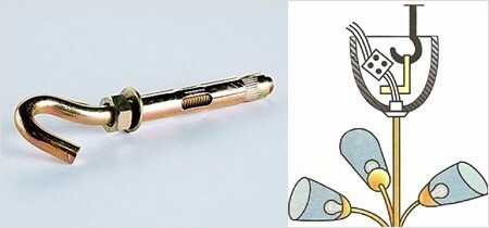 - Крепление люстры на крюк