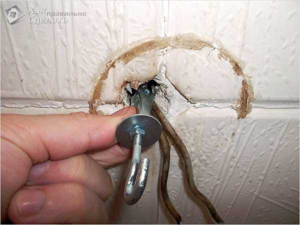 Установка потолочной люстры на монтажный крюк