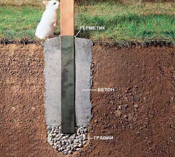 Вкопанные таким образом деревянные столбы прослужат долго.