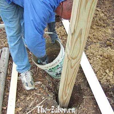 Установка деревянных столбов для забора