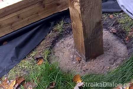 Установка деревянного столба в грунт