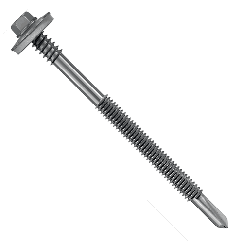 Винты для сэндвич-панелей для крепления сэндвич-панелей к стали бывают двух типов. А именно с точкой сверления 3 (ВР3) и точкой сверления 5 (ВР5). Саморезы для сэндвич-панелей со сверлом 3 подходят для крепления сэндвич-панелей к стали толщиной 2–5 мм. Саморезы для сэндвич-панелей со сверлом 5 подходят для крепления сэндвич-панелей к стали толщиной 4–12 мм. Винты для крепления к стали изготовлены из биметалла. Это означает, что винт изготовлен из нержавеющей стали, а наконечник сверла из металла. Сверло из нержавеющей стали недостаточно прочное, чтобы просверлить сталь. Как и в случае с шурупами для сэндвич-панелей по дереву, вы определяете длину, добавляя примерно 50 мм к толщине вашей сэндвич-панели.