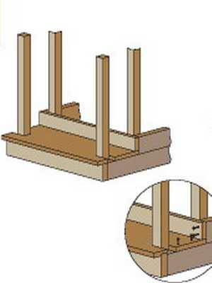 Важно: При проведении монтажных работ не допускается применение гвоздевого соединения. Чтобы обеспечить устойчивость конструкции все детали фиксируются шурупами.