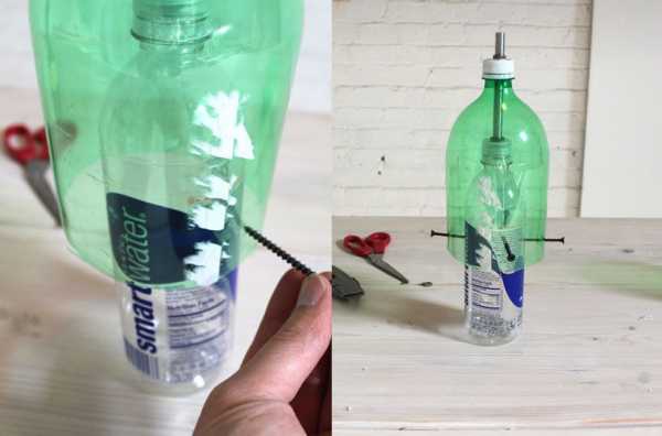 Затем используйте саморезы для фиксации бутылок.