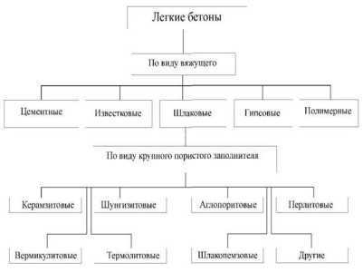 В зависимости от вида применяемого крупного пористого заполнителя легкие бетоны разделяют на керамзитобетон, аглопоритобетон, шлакобетон, пемзобетон и т.д.