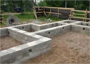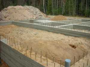 Если вы строите с заливкой пола, то необходимо выровнять дно получившейся ямы, а после хорошо утрамбовать. Рассчитываем, как будут лежать плиты. Если нужно, то выкладываете сетку из арматуры. Из досок сколачиваем опалубку и заливаем ее бетоном. В случае, когда на фундамент предполагается большое количество нагрузок, то следует в бетон вставить арматуру.