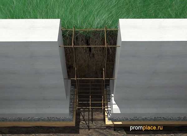 - К изготовлению других укрепляющих элементов приступают после набора бетоном 70% проектной прочности. В единую систему они, впоследствии, объединяются благодаря выпускам арматурных стержней, оставляемых в каждом элементе.
