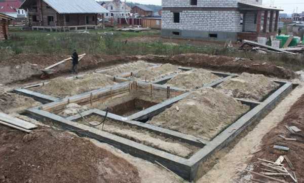 Многие опытные строители советуют закладывать фундамент прерывистым. Таким образом, его осадка в разы меньше, чем у ленточного, а это соответственно увеличивает на 20-30 % давление под подошвой.