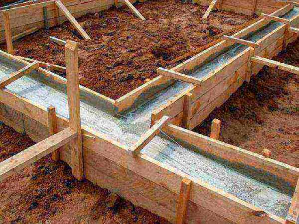 Чаще всего для таких домов делают заливные фундаменты, которые выполняются из бетона со щебнем или же гравием. Сначала выставляется опалубка, а следом заливается бетон и утрамбовывается.