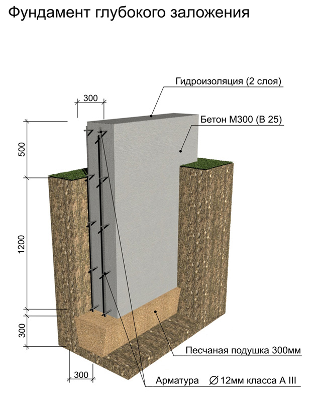 Например для южных регионов глубина промерзания 0,6 м. Добавляем еще 0,2 м для надежности и получаем 0,8 м — это и будет минимальная глубина заложения фундамента. В регионах где много насыпных грунтов часто приходится копать глубже, чтобы добраться до твердой породы.