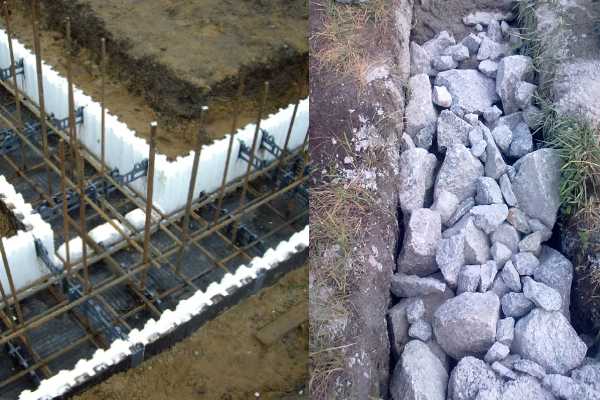 - Когда вырыты траншеи, дно следует хорошо утрамбовать и выполнить дренажный слой, состоящий из песка (10 см) и гравия либо щебня (10 см). Песок следует полить водой и хорошо утрамбовать.