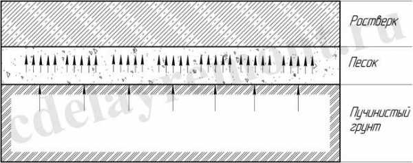 - Закладка подушки, назначение которой выравнивание дна. Для определения ее материала желательно сделать анализ почвы на наличие грунтовых вод.