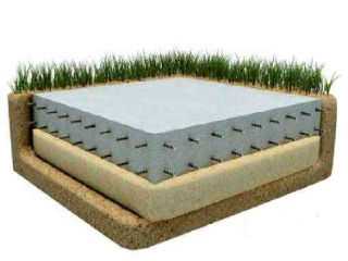 В данном случае требуется значительно меньше бетона, щебня или песка для выполнения подложки и материала для сооружения опалубки. Составляющими конструкции являются: