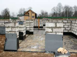 Если в качестве столбов применяются керамзитобетонные блоки, которые слабо способны противостоять морозу, снаружи их следует покрыть битумной мастикой, за исключением стороны, которая обращена внутрь подполья. Это позволит устранить увлажнение блока, помогая высушить его.