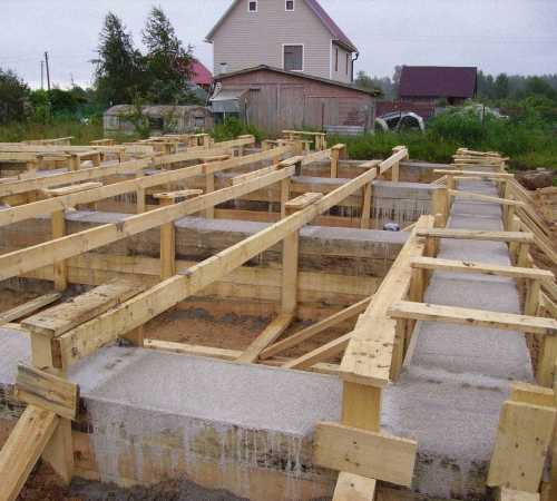 - Монтаж опалубки, она, как правило, выполняется из бруса, ширина которого будет равняться толщина фундамента.