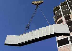 Установка лестниц производится с применением подъёмных кранов по мере возведения каждого этажа.