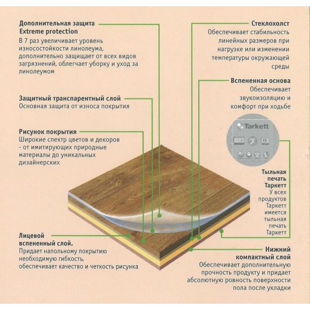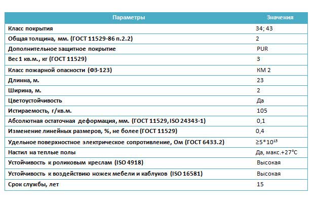Все модели соответствуют нормам ГОСТа России, что отличает линолеум Tarkett от другой продукции, изготовленной по Техническим условиям (ТУ).