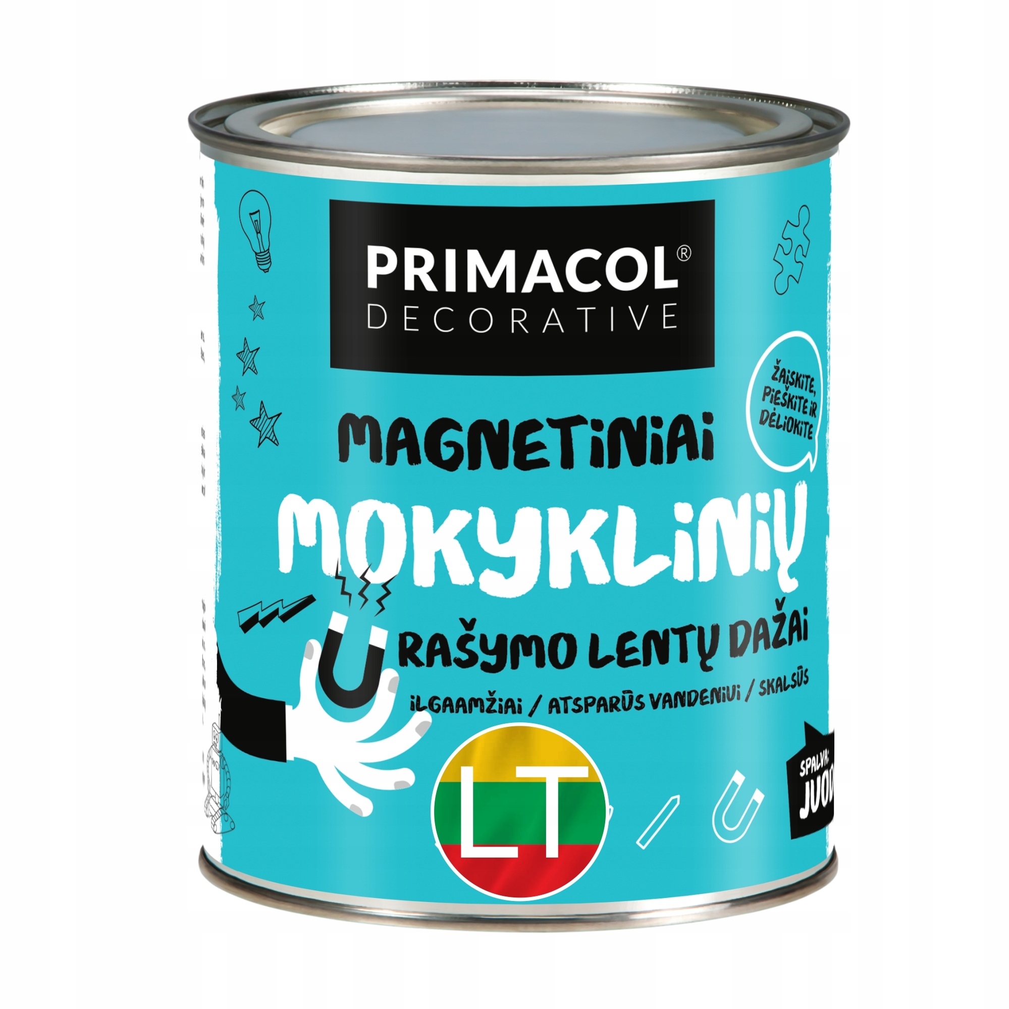 Поверхность получается серая, что не всегда подходит по дизайну. Но покрытие совместимо с любой другой краской и не меняет от этого свои свойства. Сочетая этот материал с маркерной или грифельной краской, можно получить многофункциональную поверхность, которая идеально подходит для детских комнат. Магнитная краска для стен в «Леруа Мерлен» предлагается в тарах различного объема для большего удобства использования.