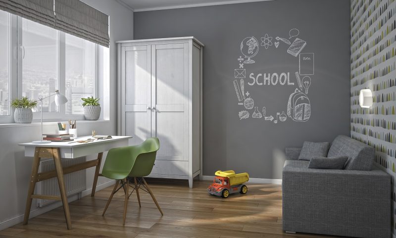 Поверхность получается серая, что не всегда подходит по дизайну. Но покрытие совместимо с любой другой краской и не меняет от этого свои свойства. Сочетая этот материал с маркерной или грифельной краской, можно получить многофункциональную поверхность, которая идеально подходит для детских комнат.